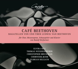 Café Beethoven has been designated by its creator, Rudolf Herfurtner as a ‘concert play’; the note reveals that its intention is to suggest “the cosy melancholy of the coffee house”. The put-upon waiter (projected with relaxed, appealing warmth by the actor Thomas Weissengruber) makes for an informed, wry MC; he welcomes us along and shares his anecdotes and perceptions about Beethoven on the even-numbered tracks of this disc. The odd-numbered ones take us on an illuminating tour of Beethoven’s (mostly) lesser-known works for voices with piano including choral songs, weird miniature choral canons (including the extraordinary “Tatata“ für Mälzel), a reduction of the marvellous Meeresstille und glückliche Fahrt and the Prisoners’ Chorus from Act 1 of Fidelio. Lusty drinking songs (the Bundeslied, Op 122) rub shoulders with delightful piano miniatures (one of the effervescent Mödlinger Tanze). More inward material (the little-known Elegischer Gesang op. 118) cuts to the core. The project is described as Chorwerk Ruhr’s contribution to the Beethoven 250 celebrations. Their performances are a consistent delight, well-drilled, crisp in diction, conveying joie de vivre, melancholy and aspirational passion by turn. The balance with Bruckman’s sensitive accompaniment has been splendidly realised by the Coviello engineers.