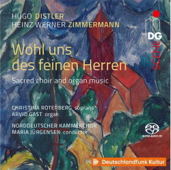 But his music survives and brims with life as this disc demonstrates most strikingly. It comprises a quartet of all-too-brief liturgical movements for unaccompanied choir, a delightful miniature cycle for solo soprano with organ (the title Drei geistliche konzerte recalls Schütz), and an attractive, rather Hindemithian organ sonata; it concludes with a rather jazz-influenced choral homage to Distler by Heinz-Werner Zimmermann; if the MDG booklet were to be believed would be celebrating his 100th birthday this year – in fact this is an erratum – at the time of writing he is 89 years young.