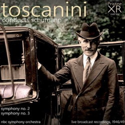 Andrew Rose brings about the expected sonic transformations of two decent-quality NBC radio broadcasts. The Rhenish, which RCA has been issuing in various formats for decades, here sounds big and bright; the opaque tuttis distort slightly, but details like the Ländler's high unison horns cut through impressively. The C major symphony is nearly as good, but less consistently vivid below mezzoforte. The string sound is true; the wind choir, in the dry acoustic of Studio 8H, occasionally leaps from the speakers with startling presence and depth - the fanfare near the finale's start actually registers more strongly than the tutti coda.
