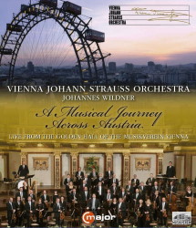 It’s a rather unusual hybrid – part classical concert from Vienna’s Musikverein and part promotional vehicle for some of the country’s most beautiful attractions. Throughout the musical selections – and sometimes on the flimsiest of supposed pretexts – we cut away to some expertly crafted pieces of film, showcasing, among others, the wetlands of Lake Neusiedl, Burgenland, with its abundant wildfowl; the Austrian mountains where we find a rally of colourful motor vehicles in progress; the lakes, woodland glades and pathways of Vienna and Lower Austria; the varied Imperial, art nouveau and even – though kept well in the far distance - starkly modern architecture of Vienna itself; the Wurstelprater amusement park; the Green Prater’s beautiful parkland; the finely-manicured lawns and the statuary of the capital’s pleasure gardens near the Ringstrasse; the alps of Upper Austria and the Tyrol; some of the country’s most impressive castles and monasteries; the Schönbrunn Palace, the Vienna residence of the Habsburg emperors; the – rarely blue - river Danube; the Semmering railway of Lower Austria and Styria; and the Golden Hall of the Musikverein, Vienna, where the concert itself is being given.