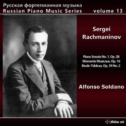 The Moments Musicaux. Op.16 are often seen as the first examples of the characteristic Rachmaninov piano style. These six pieces from 1896 bring the more complex textures and greater technical difficulty that will be a hallmark thereafter. Soldano again lingers over the opening B flat minor piece, his 8:50 contrasting with the 7:16 of Giltburg (on that same Naxos disc as his Op.39). Here the tempo is less persuasive, giving a slight sense of attempting to wring more from the music than might be there. In No.2 in E flat minor his tempo is closer to the norm, and though he is a minute slower than the 2:49 of Rachmaninov’s own recording, so is almost everyone else. That these pieces can of course work at different speeds is shown by the lovely No.3 where it is Soldano’s nicely flowing 4:42 that fits the marked andante cantabile better than Giltburg’s 7:31, but both are full of feeling. In No.4 Soldano is again splendid, not least in the poetry of the highly characteristic descending bell motif. His poetic feeling is abundant also in the rocking barcarolle rhythm of No.5, which is beautifully phrased, while in the Maestoso of the final item – one of the composer’s most challenging technically – Soldano makes an impressive close to this fine account of Op.16.