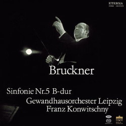 I am a Konwitschny fan; he was a great, charismatic and versatile conductor - and I would also remark that he was playing Bruckner in East Germany long before it caught on in the West, so this remastered reissue is most welcome, especially as it is such a fine account of the Fifth. The LP was originally issued on Eterna (as per the top right of the cover here), then the CD appeared on the Berlin Classics label and as part of various box sets such as that from Scribendum, but those CDs were apparently over-processed so as to deaden the sound; this Hybrid SACD issue is the result of a collaboration between Berlin Classics and the Tower Records Japan and is much more alive. The cover carries the legend “Please understand that noise (sic) of this disc were (sic) caused by the original master tape”, to which quaintly phrased warning I might observe that Pristine don’t make that excuse when remastering older recordings but successfully reduce that noise. No matter; Tower are clearly just playing safe as the hiss is minimal and the sound excellent for its age, really vivid – only it’s a pity about the quite prominent pre-echo, which is more worrisome than any hiss, especially if you listen on headphones. There is also a clumsy edit at 8:44 in the first movement, whose abruptness could surely have been mitigated via remastering.