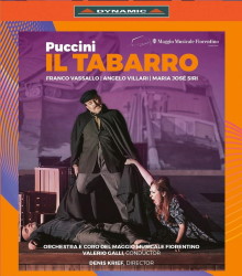 It comes then as something of a surprise to encounter this Blu-Ray disc which presents Il Tabarro in total isolation, without any other music. The booklet note by Michele Girardi, drawn from a MMF programme, discusses the opera in the context of a complete performance of the Trittico, and indeed it is clear that all three operas have been issued as separate items, a very extravagant exercise. Be that as it may, this is a very solid rendition of the score, perhaps lacking the ultimate in impressionist atmosphere but certainly with a strong sense of engagement under the baton of Valerio Galli. The sound effects are all firmly in place – indeed, the tugboat siren is very prominent for a sound described in the score as “più lontana” than the already “lontana” automobile horns – and the two lovers indicated as “due ombre sulla strada” are firmly in evidence on the bank immediately adjacent to the barge at the front of the stage. And the three principal singers, all of them roles that demand a great deal of their performers, give their full resources both vocal and dramatic to the presentation of the music. Franco Vassallo as the cuckolded bargeman has a voice of iron quality, and the final phrase of his monologue rises to a stentorian high G over the fff chords of the orchestra. At the same time he can break the listener’s heart earlier with his desperate appeal to his wife “Resto vicino a me!” As his wife Maria Jose Siri gives us a warm-hearted woman whose attempts to escape from poverty and domestic misery are doomed to failure but still enable her to sympathise with the ridiculous pretensions of Anna Maria Chiuri’s scavenging baglady as well as daydreams of her younger and happier days. As her new lover Angelo Villari is a tower of strength in his crucifyingly strenuous threats at the end of their ‘love duet’ trumpeting out his chain of repeated G sharps over the unrelenting orchestra in a manner that simply lies beyond the capacity of so many tenors who are otherwise adequate to the conventionally romantic sections of their role. He is the only singer whose performance elicits audience applause to interrupt the flow of the music, although his singing of his mini-aria Hai ben ragione is stronger on bitterness than lyricism. In fact the applause of the audience is lukewarm even at the end – it fades away altogether before all the singers have left the stage after their single curtain call – which does scant justice to the performers. Presumably the audience reserved their full appreciation for later on. Among the numerous supporting cast Eugenio di Lieto is a noteworthy Talpa, although he looks far too young and personable for a character whom Michele dismisses as a possible lover for his wife as “troppo vecchio”.