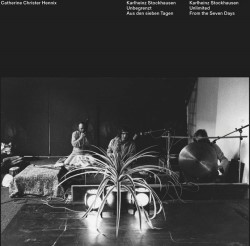 You can find a number of versions of Unbegrenzt online, and each has its own character, depending on the instruments used and the choices of emphasis and balance taken by the musicians involved. Stockhausen’s score for Aus den Sieben Tagen, “denies its performers notated direction and instead provides poetic cues that hinge upon Stockhausen’s conception of ‘intuitive music’... Eschewing the busy, conservatory-addled lapses into idiomatic citation of Stockhausen’s 1969 recording, Hennix’s alternative realization of the Unbegrenzt score’s instructions to ‘play a sound with the certainty that you have an infinite amount of time and space’ is based on her concept of Infinitary Compositions, the trademark of her ensemble The Deontic Miracle.” The result is, as any such performance must be, a snapshot in time and a portrait of a particular period and place in musical history, and as much a portrait of the musicians and their interpretative choices than of the actual composer, Stockhausen. The recording itself has a distinctly analogue feel, with a healthy layer of hiss from the tape reassuring us that the upper registers in the sound haven’t been filtered. The bowed gong adds an atmosphere of doom with its sonic lowness, around which sine-wave generated electronic sounds sometimes dance with actions comparable with the other percussion instruments, and sometimes penetrate with sustained tones that advance and recede within the various ongoing textures. A spring-loaded echo chamber transforms some of the percussion sounds, voices are ghostly and indistinct, and composers of a certain vintage might indeed be able to identify more effects available to studios of the time.