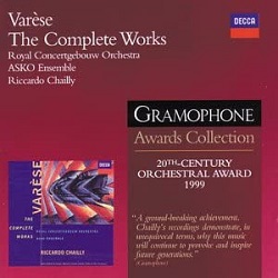 These two discs thoroughly packed in a single-width case bring back into circulation, through a licence given to Presto Classical, a Gramophone Awards Collection issued in this format in 1999. It was winner of the magazine’s “20th-Century Orchestral” category - a category that seems to have existed only in 1999. When the set first saw light of day (1994) it went under the Decca number: 460 2082. Riccardo Chailly, now associated with his Brahms, Mahler and Stravinsky, tended at that time to circulate in more recondite waters. Varèse fitted that profile: a composer known by reputation and historical significance rather than for the experience of hearing his music. Chailly was a pioneer in having dived into the Complete Works, but before him there were recordings by Boulez (DG and Sony), Lyndon-Gee (Naxos), Mehta (Decca), Craft, Jansons and Michael Tilson-Thomas, not to mention an item in a Turnabout Americana LP.
