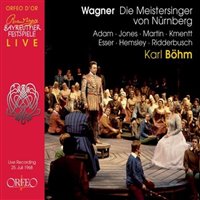Ralph: The chorus trained by Wilhelm Pitz is superlative and the orchestral playing beautiful, with very few blips. Finally, Böhm's conducting is deeply satisfying: never rushed as his Ring and, occasionally, Tristan, are; everything is beautifully paced and very natural, minimising the longueurs inherent in David's Music Rules narrative and bringing out the rich humanity of the work. Crucial passages such as the Prelude to Act III and the quintet are perfectly judged and for quality I place this with his best Strauss recordings. I have reservations because Kmentt is not Heppner, Jones isn't Janowitz and Adam isn't Stewart but this is more than the sum of its parts and that rare thing of the kind I saw at Glyndebourne, even with an indifferent pair of lovers: a performance to convince you afresh that Wagner wrote by far the most complete, absorbing and inspired music dramas ever penned by a composer.