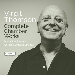 Listeners can hear it for themselves on this beautifully produced collection of Thomson’s chamber music from the Everbest label, the first-ever integral recording. Made under the auspices of the Virgil Thomson Society by the members of New Hampshire-based Monadnock Music in 2012, but issued only this month, these performances make as fine a case for Thomson’s chamber music as can ever be hoped, although even they cannot dispel the impression of stylistic sameness that quickly sets in. One would hardly guess a half-century divides the earliest (Sonata da chiesa) and latest (Stockton Fanfare) works on this set.