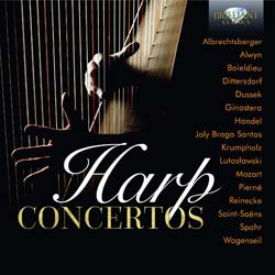 The range of Harp Concertos here is undeniably considerable. The works included vary in date from 1736 to 1980; from composers as familiar as Handel, Mozart and Saint-Saëns to lesser-known figures such as Jean-Baptiste Krumpholz, Georg Christoph Wagenseil and José Manuel Joly Braga Santos. There are concertos for solo harp and for the harp in partnership with the flute (Mozart), the violin (Spohr), the oboe (Alwyn and Lutosławski). Those with a long-standing love of the harp will doubtless already be in possession of recordings of a number of these concertos, but for others this set of 5 discs will be an invitation to add, for relatively little money (the set is available from UK dealers online for prices such as £14.36 and £14.75) a number of interesting and probably unfamiliar works to their collection. While in some cases superior recordings certainly exist, none of the recordings brought together here seem to me to be inadequate or inacceptable.