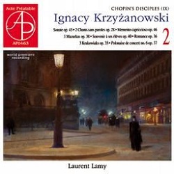When I first listened to this disc I was concerned that some of the melodies were edging towards sentimentality but Krzyżanowski always forestalls this with a change in dramatic focus or a new harmonic direction. There is plenty to please here and Laurent Lamy is sure-footed and reliable, obviously connecting with this music. As always Acte Prealable's notes, in Polish, English and French, are informative and comprehensive and the whole series is well-thought out. I shall seek out volume 1 and look forward to further volumes – there are several opus numbers still to go and hopefully this will be as complete a survey as the Tellefsen and Fontana recordings.