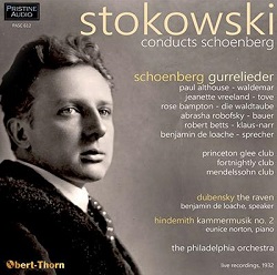 Although he had begun it in 1900, Schoenberg did not complete Gurrelieder for a decade, and its first performance was not until 1913 under Franz Schreker. Its sheer size made it inevitable that it should be infrequently performed. The three performances that Stokowski conducted in Philadelphia on 8, 9 and 11 April 1932, plus another in New York on the 20th, were the work’s US premieres. The Philadelphia Orchestra was augmented to 122 players, and the total number of performers was 532 - a challenge to record successfully even today. Not only did Victor record it, but they recorded all three Philadelphia performances, though the large number of performance problems on the first night led to its being aborted before the end. Eighteen sides survive from that first performance, and apparently at one point the performance had got into such a state that Stokowski can be heard shouting out a rehearsal number in an attempt to get everyone back together! The second performance was recorded for and issued on Victor’s newly introduced Long Playing discs. Although one can admire Victor’s courage in introducing this format, it is hardly surprising that a system which required a complete new playing system to be purchased was a failure. Victor did not help themselves by issuing only a small number of LP records, all but one other of which (Stokowski’s Beethoven 5) were dubbings of 78 rpm issues edited together. It is odd that Edison had made exactly the same mistake with his similarly short-lived Long Play Diamond Discs a few years earlier. This performance was issued on CD by Pearl in 1993 in an excellent transfer by Ward Marston (CDS9066 - review), but the LP format meant that the recording had be much less wide-ranging in dynamic than the 78 format. The present issue is taken from the third performance, which was the one used for the standard 78 format, and issued on 14 records. In his notes, Mark Obert-Thorn estimates that the $28 the set cost in 1932 is the equivalent of $531 in 2020, so it is hardly surprising that sales were minimal and the set is extremely rare. The 78s were transferred by RCA Victor onto 3 LPs in 1954 (LCT-6012) and I believe that this transfer was also used for the 2 LPs issued in 1977 (AVM2-2017), though I do not have access to the 1954 issue, so cannot be certain.