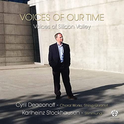 Multifaceted musician Cyril Deaconoff is a composer of concert, film, video game and media music, conductor, and organist. He is the current Artistic Director of Voices of Silicon Valley, and having studied with John Poole, former director of the BBC Singers, and Paul Hillier who released a previous recording of Stimmung with Theatre of Voices, his pedigree in this field is based on firm foundations.