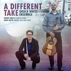 This is indeed a different take. Two superb musicians with the seemingly limited sound world of the combination flute and guitar, but in reality capable of producing a myriad of sonorities as well as rhythmical varieties in a repertoire of more or less contemporary works by to me totally unknown composers. All right, Stevie Wonder was a known capacity, albeit not this particular tune. But the traversal of this close to hour-long programme was a fascinating and varied trip through a foreign landscape and when I reached the finish line I felt deep satisfaction. Here was a conglomerate of influences from many corners of the world: Argentina, Mali, Japan, Balkan, the Middle East and naturally North America. Linda White also changes between the traditional concert flute and the more rarely heard alto and bass flutes. The opening work, guitarist Stephen Goss’s From Honey to Ashes is a set of eleven pieces, from which the Gruca White Ensemble have chosen the last three pieces following each other attacca. Initially rather minimalistic there is a good deal of improvisation – or so it seems. The second movement, Tango Brawl, is a homage to Piazzolla and the concluding The Ajman has Arabic overtones.
