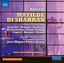 Matilde di Shabran ossia Bellezza, e cuor di ferro (Matilde of Shabran or Beauty and Iron Heart) was the full title of Rossini’s 32nd opera, premiered at the Apollo Theatre in Rome on 24 February 1821. The conductor was the famous violinist Niccolo Paganini. It is a melodramma giocoso (opera semiseria) in two acts with a libretto by Jacopo Ferretti, which in its turn is based on an older libretto. The opera exists in three versions; what we hear on the present recording is the first version and it is a world premiere. There are a couple of previous recordings available of the Naples version from November the same year. It seems that Rossini met with shortage of time and had to ask his younger colleague Giovanni Pacini (1796 – 1867) to compose three numbers in Act II, which Rossini later replaced with versions of his own. The opera was rather successful to begin with but after some time it vanished out of view – a fate that struck many of his works – and it wasn’t until 1974 that it was revived. Since then it has been staged occasionally, but it has never entered the regular repertoire. It is a long opera with a playing time of almost 3˝ hours and with a substantial interval in the middle – absolutely necessary after more than two full hours – it makes for an evening in the theatre of almost Wagnerian length. The story is filled with complications that we needn’t give further details about – the cued synopsis is very informative. A thumbnail blurb can give a hint: Count Corradino has taken a fancy to Matilde and she responded positively, but then she falls in love with one of his prisoners, Edoardo, and the brutal Count condemns her to be thrown down in a waterfalls from a steep cliff. I won’t reveal the outcome of the story, but the information that this is a ‘melodramma giocoso’ may be a clue.