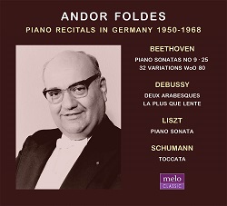 The lion’s share of the disc is taken up with Beethoven, there being two sonatas and the C minor Variations. First off we have the short Piano Sonata in G major, Op 79. Foldes takes a very brisk and joyous view of the opening movement, which is as it should be as it’s marked Presto alla tedesca. By contrast, the middle movement is a melancholic barcarolle. The witty Rondo finale recalls to mind the ‘Rage over a lost penny’. From a recital given two years later we have the Piano Sonata in E major, Op 14 No 1. Foldes provides a cheerful and exuberant view of it. The composer later arranged this beautiful sonata for string quartet, which certainly works well. The 32 Variations on an original theme in C minor, WoO80 derive from a 1968 broadcast from Bremen. The imaginative variations are built on the theme of a traditional chaconne. It’s a work Glenn Gould excelled in, and this one is no less a bold and bracing account.