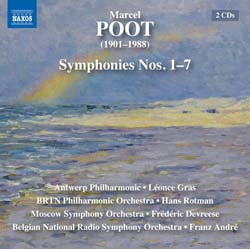 Marcel Poot, of Belgian birth, composed mightily, mostly for instrumental forces and rose to high office in the Royal Conservatory of Brussels. Orchestral music was the main draw for him although there are also works for wind band, a Belgian specialism. Outside his seven symphonies there are various other works including the tone poem Charlot (Chaplin). As an aside: Chaplin’s popularity also drew works from Koechlin, Milhaud and Aubert as well as from Castelnuovo-Tedesco, Ronald Stevenson, Haydn Wood and Teodorescu-Ciocanea. Back to Poot’s symphonies: they populate the years of his late youth, maturity and old age. Predominantly tonal and in three movements, they are hallmarked by rhythmic energy, bright orchestration, lyrical impact and comparative brevity.