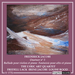 The Ballade for Violin and Piano was composed three years earlier in 1942 for violinist Eudice Shapiro and the composer's wife, Irene Jacobi. In this recording, the violinist is Fredell Lack, leader of the Lyric Art Quartet, partnered by Irene Jacobi. Fairly substantial at over eleven minutes in length, much of the writing is impressionistic and rhapsodic. It also sounds quite improvisatory in parts.