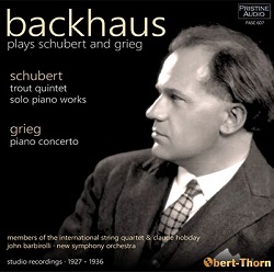 I have loved the Schnabel/Pro Arte for many years and have the collected Schubert in a budget Warners box, which I regard as one of my treasured sets. Reviewing an earlier compilation on Music and Arts, which I haven’t heard, Jonathan said of their “Trout” that “these sides have passed into the lexicon of recorded history so only a few words will be necessary from me.” He disagreed with the liner-notes by Harris Goldsmith whose dismissive jibe referred to the Pro Arte’s “simpering” portamenti. His great quote “One man’s simper is another man’s affectation” is classic. The Schnabel/Pro Arte’s Haydn quartets I recommend to anyone remotely interested in great chamber playing and what a shame that the economics of the 1930s meant little Beethoven was recorded. I totally agree with “light-hearted and airily textured with a leisurely Scherzo” which is how Jonathan characterises it. I enjoy also the “Andantino’s scoops and trills that are crisper than crisp and a delight”. Sadly, Backhaus and team, in much murkier sound by comparison seem po-faced and lacking in joy. I’ve always found Backhaus a difficult pianist to warm to. I have his complete Decca box and enjoy his second Beethoven piano sonata cycle and his Brahms Second Piano Concerto and Mozart 27 with the VPO under Karl Böhm. Schubert was not his forte and even in the sublime shorter pieces, I’m searching for some vestige of spring in the step; to my ears, it’s lacking. That said, I’m sure many will disagree and that’s the fun of comparing recordings. After my initial hearing, I delayed playing this CD again, in case I felt differently but sadly not.