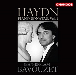 Ambiguity describes the opening movement of Sonata 53. A ruminative Presto Bavouzet, I think rightly, takes more like Allegro assai for a sober unease confirmed by the sudden f of the staccato arpeggio midway through the second phrase, after which the right hand shows a manic side with a flurry of high tessitura semiquavers before a more lyrical manner rescues the exposition. In the development the explosion comes earlier and, at the height of disquiet from its increasing tension (tr. 16, 2:46), Bavouzet adds an appropriate right hand eingang (mini-cadenza). The repeat enlarges the intensity so Bavouzet’s eingang now is a brooding left hand one, before Haydn’s optimistic codetta (5:16) restores the balance.