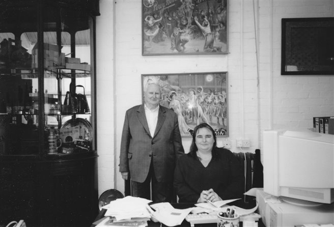 Figure 1: John Huntley with his daughter Amanda at Huntley Film Archives, Newington Green, north London, July 13, 2000 (photo courtesy of Cynthia Harris).