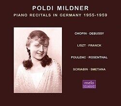 Her heritage is reflected in the repertoire that she recorded, Strauss transcriptions, Liszt and Chopin, and we can hear more of the latter on Meloclassic's excellent first Mildner release alongside Schubert and Debussy (Meloclassic MC1022). This new volume gives us a even broader picture of the pianist; there is more romantic repertoire including a couple of transcriptions and on the more serious side Franck's epic Prélude, Choral et Fugue as well as Debussy and relatively little known Poulenc. She opens with her speciality, a recital of virtuoso works recorded on 9th December, 1955 first playing two Chopin Waltzes that both display her velvety tone and poised sense of rhythm. Liszt's Rhapsodie espagnole is given a performance that Georges Cziffra would have been proud of with crisp articulation, glittering figuration and effortless virtuosity; even though the folies d'espagne starts at a fairly fast tempo she has no trouble with the complexities of its variations and the clarity in the triplet chordal runs is enviable. It says arr. by Rosenthal and as far as I can see this is restricted to one page where scale runs are replaced with octaves runs and a slightly thicker texture. She recorded Rosenthal's stunning and inventive Carnaval de Vienne commercially – it can be found on HT6603 mentioned above – and this live version has perhaps even more presence and verve. Perhaps this is as close to hearing how Rosenthal may have played it in his heyday as we are likely to get. More short dances follow, this time two of the four sparkling polkas by Smetana that make up book of his Czech dances. As is her want Mildner plays these rather fast and I am used to hearing the A minor at a more gentle pace. That said she is not wanting for poetry in either and these are thrilling and buoyant performances. I was delighted to see she had recorded the F major which has long been one of my favourites; was once a familiar encore item, having five recordings in the 1920s, two of them by Wilhelm Backhaus in his virtuoso days. Two etudes by Scriabin are impressive but seem almost restrained in comparison with frankly astonishing suggestion diablolique that closes this selection; I can't recall that I have ever heard this played so fast and diabolerie seeps from every note. The back cover contents list this as a Scriabin piece no.4 op.8 but I doubt pianophilies will be put off by this.