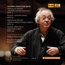 A valuable feature of this Edition Staatskapelle Dresden series, a bilingual edition in German and English, is the scrupulously produced booklets, produced to a high standard with one caveat. Included are well researched essays, reproductions of artworks and documents dating from J.S. Bach’s lifetime, and photographs of the vocal soloists from the recording session, the Staatskapelle chamber group and director Herreweghe. There are also number of historical photographs showing the destruction of Dresden after Allied bombing during World War Two. English translation of the interviews with Philippe Herreweghe and Andreas Schreiber (assistant principal viola) are provided. My grumble concerns the German sung texts and English translations, parts of which but not all are included in the body of an essay. Ideally, full sung texts and translations would be given separately and placed alongside each other in the booklet.