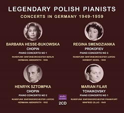 Meloclassic's grand unearthing of radio treasures continues with four concertos played by pianists who have fallen into neglect. I had heard recordings by Hesse-Bukowksa and Smendzianka and it is to Hesse-Bukowska that I owe my discovery, many years ago, of Ludomir Rozycki's beautiful Ballade for piano and orchestra. Sztompka and Filar were just names in a dictionary for me prior to this release.