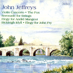 JOHN JEFFREYS Violin Concerto (Lawrence Jackson with Orchestra da Camera, conductor Kenneth Page); Serenade for Strings; Bickleigh Idyll; Elegy for John Fry (all Orchestra da Camera/Kenneth Page) The Fox (Song cycle - Barry Duane Hill) Martin Renshaw (tenor) with members of the Orchestre Philharmonique des Pays de Loire. Elegy for André Mangeot - (Members of the OPP Loire).     Meridian CDE 84331