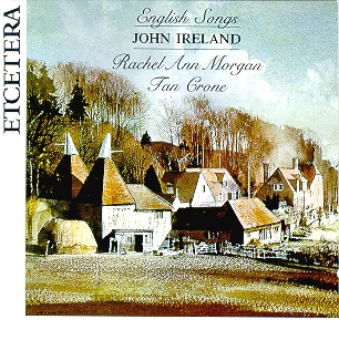 Some time ago, greatly impressed with the catalogue of Etcetera, I tried, vainly, to obtain several CDs (notably this one - Viola works by Dale, and Violin by Godowsky). I am now curious that this label has become available via Koch International. Whatever the answer, this very interesting selection of Ireland’s solo songs by the Welsh mezzo, Rachel Ann Morgan, and her sensitive partner, the Dutch pianist, Tan Crone, is well worth having. The songs are presented chronologically, from around 1912/13 to 1931 (after which Ireland wrote only the Five 16th Century Poems and a few choir items) - and so it is, I suppose, reasonable to assume that this represents an overall survey of Ireland’s songs. To an extent it does - including two remarkable sets of songs Mother and Child (1918) and Songs Sacred and Profane (1929/31) - and from these two sets alone one may appreciate Ireland’s development. It is also true to say that his personality in music was formed early - for by the date of the earliest song here he had written The Forgotten Rite, Decorations his first Violin Sonata and Phantasie Trio. He had published several early songs - and perhaps the inclusion on this recital of the early very Edwardian ballad A Song from over the Hill reinforces the impression that, given the omissions of two very important compositions, Marigold (1913) and Earth’s Call (1918), as well as that of the later Hardy settings, we are presented with the more essentially lyrical side of the composer. Although there is melancholy - in Spring Sorrow, in When I am dead and If we must part - there is little if anything of the dark introspection of The Tragedy of that moment or of The Vain Desire. There are ‘hushed and breathless moments’ but we only become conscious of introspection in the final set of Sacred and Profane. I would be delighted if the two soloists would consider completing the picture by recording now the other songs of Ireland which, if concluded with the 16th Century songs would present a rounded picture of a composer whose sensitivity to verse was one of the major well-springs of his creativity. Reviewer Colin Scott-Sutherland |