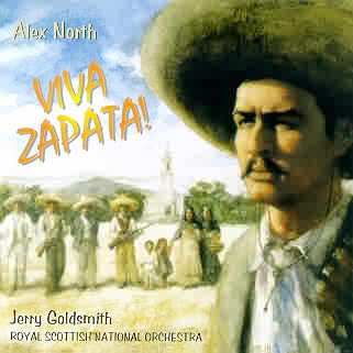Interest in this score was sparked with the recent release of the Nonesuch album of film music by Alex North, recorded by Eric Stern and the London Symphony Orchestra, which included the "showpiece" of the Viva Zapata score - "Gathering of Forces" a very impressive study in crescendo. It rivals Franz Waxman's "The Ride to Dubno" from Taras Bulba (see the review of the Ryko CD also published this month); it has the same sort of thrilling repetitive figures in crescendo and, like, Dubno, the North cue could become another concert piece to rival Ravel's Bolero. Both Stern and Goldsmith give us thrilling readings. I was struck early on in Goldsmith's performance with a short phrase that almost identically pre-echoed "Don't Cry for Me Argentina" of Andrew Lloyd-Webber.