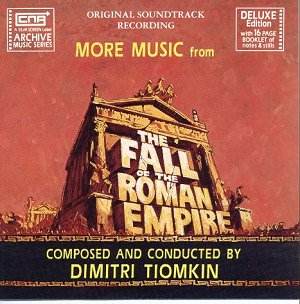 Last month John Huether reviewed the Sony-PEG original soundtrack recording of Tiomkins The Fall of the Roman Empire music and in his concluding paragraph, John said that it would be nice to have another 20 or 30 minutes of the score in an expanded release. The Sony-PEG disc lasts for some 39 minutes. This expanded original soundtrack edition, boasting some 14 new selections, when it was released in 1991, clocks in at 44:35 minutes (an additional five minutes or so of music).
