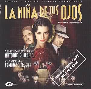 Symphonic music is not inherently funny, so the way to make instrumental music comical is to do something far beyond the norm. The result is always burlesque, which is not exactly gut-busting humor, and it typically degrades the 'serious' aspects of composition. "La Nina de tus Ojos" is a score that balances parody and drama in such a way as to make use of both ideals. True, there is nothing outrageously droll about the filmusic, but there is wit. The film itself is a dramatic comedy set in 1938 Berlin, with a Spanish film crew shooting an Andalusian musical titled "La Nina de tus Ojos" ("The Girl of Your Dreams.") The music perfectly captures this setting. There are some clichés, including Hollywood-style outbursts that seem pilfered straight from John Williams' "1941" score, but these do not hamper the musical juggling act Duhamel creates. Two entertaining songs by Perello & Mostazo, 'Los Piconeros' and 'La Bien Paga,' liven things further. The album begins with a rather pointless suite, 'Polaroids' From Film. The suite contains four movements, 'Los Piconeros' acting as bookends (the first sung in Spanish, then last in German) and the center two movements are the title track and the finale. It is an interesting idea, but one executed without structure, or melodic support. It serves no purpose when compared to the music in the film chronology. The soundtrack proper embodies variety and skill. The production is agreeable. Biographies, plot synopsis, extensive credits, movie stills, and captions lay out in an attractive manner. The booklet is in Italian, English, French, and Spanish. The presentation is in Dolby Surround and sounds fine. The City of Prague Philharmonic deserves extra praise for an orchestral performance filled with a delightful abundance of grace and satire. It is an ensemble that captures the spirit of filmusic more than many better-known orchestras. Reviewer Jeffrey Wheeler