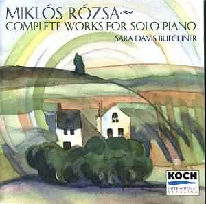 This is Volume 9 in Koch's splendid series of Rózsa discs. It is interesting that I was reviewing the Cambria disc four or five months ago and applauding its reissue of the Unicorn LP of Eric Parkin's recordings. This Koch set has the advantage of a much more generous playing time and declares that this is the complete Rózsa piano output. The stately nostalgic Gallicism of Valse Crépusculaire (not Crépuscalaire as printed in the listing in the book and on the back of the CD) is a serious merit of this disc. It is a dignified and completely memorable offshoot from the Alan Resnais film Providence. The Variations do not sound all that Hungarian though they are enjoyable. Oddly enough they sound rather Warlockian in this account. The Parkin Bagatelles were not separately banded. These are. My Parkin disc is not easily to hand so I cannot compare head to head. However I am most impressed with Ms Buechner's sorrowingly reflective approach in Bagatelle 1 and Canzone. Valse Lent sounds rather like John Ireland in Amberley Wild Brooks mood. Kaleidoscope did not feature on the Parkin collection. It is perky, swayingly romantic, playfully Caledonian, dreamy, flouncingly Chinese and impatient. The Vintner's Daughter sequence comprises a theme and twelve variations each banded separately. The variations are a rich cake offering the theme in variety: reserve, skirling, stellar fragile, heroism, Ravelian, graveyard grotesque, macho gruff, dottily jazzy, moaning, moth-flittering, moonlit lakes and hesitantly and supernaturally tranquil. The Sonata is in three movements here playing 6.36 - 6.34 - 6.43. Buechner starts with a very low octane count for the Calmo but soon warms to the task. The sonata is a subtle of evanescent charm. I am not sure that in this performance Ms Buechner holds a successful key to the enigma. Parkin seems more coherent, with better articulation, sharper focus and communication although in every other respect the Buechner CD is preferred. Ms Buechner previously recorded as David Buechner. It was under this name that Ms Buechner recorded a Koch disc of film concertos by Herrmann, North and Waxman (KIC7225). Incidentally is there any reason why Koch consistently muddle 'formally' and 'formerly' in the notes? The Koch disc has the advantage of having been recorded twenty years after the Parkin Cambria. Certainly the quality of sound on the Koch is a joy to audition. The notes are by Christopher Palmer and date from 1975. They seem to come from that Breitköpf and Härtel Rózsa paperback monograph published circa 1978. They are very good indeed. What a loss Palmer was to the world of music when he died several years ago. In fact Palmer's notes did not cover the Valse. For this reason there is a note from Ms Buechner. I do hope that we will hear more from Ms Buechner. Is there any chance that she will record the piano music of the neglected British romantic: Roger Sacheverell Coke? She would also be devastating in both sets of the Rachmaninov Etudes Tableaux. Recommended (with reservation in the case of the Sonata). Reviewer Rob Barnett