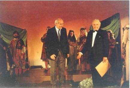 Two musical friends remembered my 80th Birthday:- Robert Tucker, the Librarian at the Barbican, who gave a special Exhibition of my Life and Works in his Library which was visited by a number of my friends and relatives, and William Lewarne Harris (known familiarly as Bill Harris) who gave the first performance of my eleventh opera A Will of Her Own at Essex Hall, 112, Palace Gardens Terrace W8 in 1985. Robert Tucker also gave the very successful first performance of my Overture The Logan Rock at one of his concerts at Eton College Hall on September 16th 1995. My eleventh opera had been in existence for some time. It had been written with Arts Council support at the request of a friend who was hoping to form a small operatic group that could give performances in the Lake district. She formed an operatic group called "Opera Piccina" but it came to nothing so my opera would never have probably been performed if my friend Bill Harris had not taken pity on it. I had found my story in a book of local legends about a Lady Heskett who had a quiet place at the end of one of the lakes until a rather ruthless kind of man called Baron Ewan Cesario came and planted himself at the other end of the Lake and began advancing towards the quiet end of the Lake, as if wishing to take possession by offering marriage to the quiet Lady Heskett. In those days King Arthur was the only resort for the oppressed, and King Arthur was as well known as a champion of the oppressed in Cumberland as I had always connected him with Tintagel in Cornwall. At any rate I found my Lady Heskett seeking and expecting the championship of King Arthur in the Lake District as much as in Cornwall. (The latest idea of King Arthur is that he was a champion of the Britons in their struggle against the invading Saxons who had taken possession of East Britain). I imagined my King Arthur as an old-fashioned Victorian champion of the weak, a man who readily came to the support of a woman in distress, hoping to find that his adversary would play the game and respond to the challenge of one who was purporting to champion a lady in distress. But when King Arthur at last meets Ewan Cesario he finds that the tussle between them is not at all of the old-fashioned romantic kind but poses a riddle: "Answer me this one. What does Woman love best? Answer me that one," shouts Ewan Cesario, casting a kind of spell of impotence upon his adversary which can be raised only when the riddle can be answered. He walks away laughing, leaving his adversary under a spell of impotence until he can solve the riddle. In the next scene we find King Arthur alone and in great distress. There follows a "scena" of which I feel particularly proud. It starts with a recitative accompanied by a mournful cor anglais: