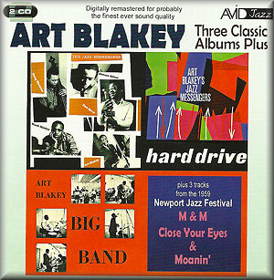 This compilation contains three LPs from 1956 and 1967, plus some tunes recorded at the Newport Jazz Festival. One tends to associate Art Blakey with small groups - notably the long-running Jazz Messengers - but the first eight tracks come from an album called Art Blakey Big Band. Of course, Blakey had previously played in that hotbed of beboppers, Billy Eckstine's big band in the mid-1940s and he actually led his own big bands for brief periods before and after working for Eckstine.