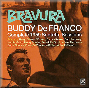 The outstanding clarinettist at this time was Buddy DeFranco, who had the facility to play complex sequences while keeping one foot in the mainstream camp. This double CD has the subtitle "Complete 1959 Septette Recordings" and comprises three whole LPs which put Buddy in a mainstream setting. DeFranco had paid his dues in the bands of Charlie Barnet and Tommy Dorsey, as well as being the first white man employed by Count Basie for his small group.