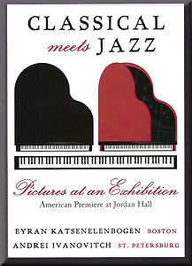 This DVD presents the work as a piano duet labelled "Classical Meets Jazz", with Andrei Ivanovitch supplying the classical side and Eyran Katsenelenbogen jazzing it up. I have already acclaimed Eyran on MusicWeb (http://www.musicweb-international.com/jazz/2009/Katsenelenbogen_9008.htm) and his playing here contains some striking pieces of improvisation. The DVD was filmed in 2009 at Jordan Hall at Boston's New England Conservatory, where Eyran is a teacher.