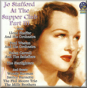 But the main attraction is Jo Stafford, with that pure, clear voice and endearing delivery. It is hard to pick out highlights, as she sings every song to perfection, but one can mention It's Only a Paper Moon, which Stafford sings with jazz freedom; I'm Always Chasing Rainbows (which Jo introduces as "inspired by Chopin's Fantasie Impromptu"); the touching When Your Lover Has Gone; Sometimes I'm Happy (which Jo sings as a slow ballad); and the poignant folk song He's Gone Away. Track 30 is an attractive medley about the Mississippi and New Orleans. Smoke Dreams crops up several times on the album and Paul Weston introduces his band with the theme - once in a medley with Smoke Gets in Your Eyes (not These FoolishThings as it says on the sleeve).