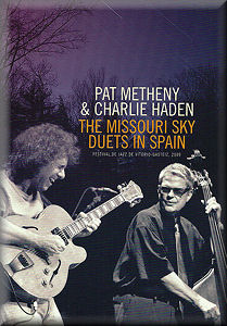 More than a dozen years ago, Pat Metheny and Charlie Haden made a record album entitled "Beyond the Missouri Sky". Now here's a DVD of some of the same material performed at a July 2009 concert in Spain. Metheny has explained the title by saying that he and Haden "came from towns in Missouri that are about 100 miles apart". The DVD comes with a minimum of information, not even listing the composers of the tunes. But the sound quality is good.