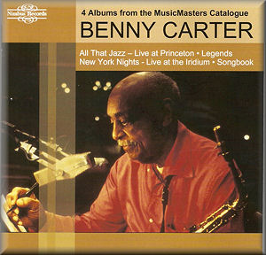 Benny Carter's MusicMasters catalogue turned up some fine sessions in which colleagues included Clark Terry, Hank Jones, and Doc Cheatham, among a raft of musicians - for the stellar singers, see the end of this review. The recordings, made in various locations, span the years 1990-95 and reveal the altoist seemingly unruffled by the reach of Time, still spinning some sublime and harmonically darting lines as if for the first time.
