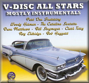 Nat Jaffee was pianist and leader of his V-Disc Jumpers, though his overloud chording doesn't impress. Fortunately the front line pairing of Charlie Shavers and Don Byas offer a textbook chase chorus in compensation. Woody Herman introduces the soloists in Northwest Passage - which must have been helpful for Armed Service listeners abroad - and with so stellar a sax section (Herbie Fields, Georgie Auld, and Flip Phillips) things could hardly fail. Fields' skitteringly erratic alto solo is a highlight. A contingent from Herman's band joined Shavers to form the Vanderbilt Stars, a chromium plated upmarket name if ever there was one. The tune J.P. Vanderbilt IV is no more than our old friend Northwest Passage and was never issued on V-Disc. On Billie Bauer's Tune Byas takes a fine solo, and then Fields a bizarre one.