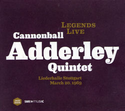 If he were known for nothing else Cannonball Adderley achieved immortality by being part of the Miles Davis Quintet and his recording of Kind of Blue, a seminal jazz record if there ever was. However, he ploughed his own jazz furrow and achieved legendary status in his own right and this disc is part of JazzHaus records Legends Live series and it is fitting that he should feature as part of it. The concert that took place in Stuttgart on March 20, 1969 that this disc is a recording of is a superb example of Cannonball Adderley's art and, not only of his, but also that of his trumpeter brother Nat who not only shines as quintet member but as composer of 3 of the tunes, as is the great Joe Zawinul, the pianist, keyboard player and composer who went on to form the trail-blazing band Weather Report and whose tune The Painted Desert alone makes the disc a must have. When you put those three elements together and throw into the mix Leonard Bernstein's Somewhere from West Side Story, the beautiful bluesy Why am I treated so bad? plus Blue and Boogie from the incredible Dizzy Gillespie and add the considerable talents of bassist Victor Gaskin and drummer Roy McCurdy, (listen and marvel at his solo on Blue and Boogie), you have a dream team with a dream menu and a recipe to die for that defines the very meaning of `legend'. It is one of those discs you can't get enough of and feel compelled to spin again no soon as it's finished. Other `legends' already on disc from this label are Art Blakey, Gerry Mulligan, Duke Ellington and Benny Goodman, featuring Anita O'Day, but the promise is even greater since JazzHaus, a division of ArtHaus Musik, has access to over 3000 hours of recordings by SWR, the South West German radio stations in Stuttgart, Baden-Baden and Mainz of over 400 ensembles and soloists which they have carefully remastered and aim to release over the next few years and if the present disc is anything to go by I can't wait. The recording here could have been made yesterday and is superbly clean and bright. This disc is a winner in every conceivable way.
