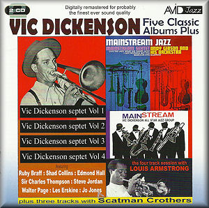 Vic Dickenson became the nominal leader of several Vanguard LPs which convincingly established mainstream jazz. Like several other players on these sessions, Dickenson had a unique sound, with a buzzing tone and ironical delivery. Ruby Braff was equally distinctive, as were clarinettist Edmond Hall and pianist Sir Charles Thompson. They were backed by a rhythm section which chugged along happily without unnecessary flourishes.