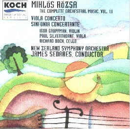 Rózsa seems to have fared less well in the 'me too' league. It has been left to Unicorn, the now defunct Pantheon and especially Koch to produce CDs of the orchestral music. Only Koch have had the courage (with some support no doubt) to develop this series across five volumes; with more to come, I would hope. We still await from Koch the masterful orchestral Tripartita previously available on Modern Masters, Volume I. London Symphony Orchestra / David Amos Harmonia Mundi HMU90 6010 (is this still available?). Vol 5 is impending and will include the piano concerto and cello concerto (previously recorded by Pennario and Starker with the Bavarian RSO and Munich PO on Pantheon).